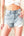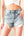 Three-dimensional layered high waist denim skorts, raw edge design stretch fabric, street style for daytime and night out.